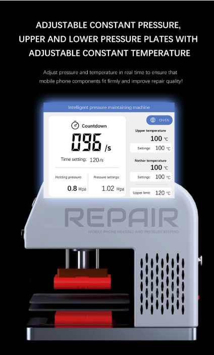 Die TBK 201P Heizpresse wird zur Fixierung von Displays, Backcovern und kompletten Geräten nach Reparaturen eingesetzt.